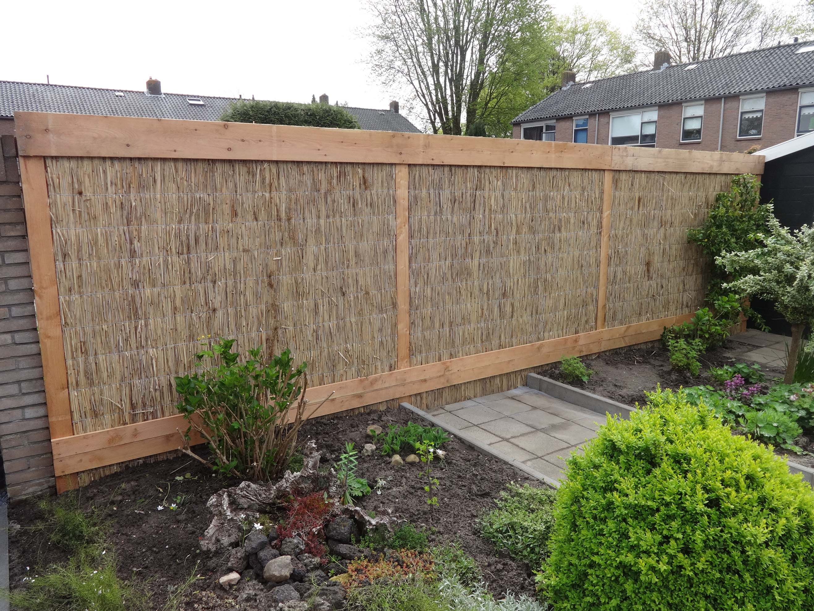 Een rieten mat is ideaal voor wie houdt van een speels en natuurlijke tuinafscheiding. In combinatie met hout of beplanting ontstaat een groene, zachte afscheiding die beschutting biedt zonder de tuin te zwaar te maken.